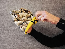 Der Beutel wird immer in eine Richtung gewendet, so dass jedes Mal ein neues Motiv zum Vorschein kommt. Das ist eine faszinierende Erzähl-Begleitung, die auch für die eigene Erzählung viel Raum lässt.