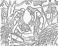 Miriam, ihr Bruder Aaron und ihre Eltern leben in Ägypten. Sie arbeiten als Sklaven in Ägypten. Miriam‘s Mama bekommt ein Baby, einen kleinen Jungen. Aber sie muss ihn verstecken. Soldaten könnten kommen und ihn ihr wegnehmen. Sie hat eine Idee – sie macht ein Körbchen, legt ihn hinein und versteckt das Körbchen im Schilf am Nil. Miriam soll aufpassen. Da kommt die Königstochter. Sie entdeckt das Baby. Miriam ist mutig und sagt der Prinzessin, dass sie eine Frau kennt, die das Kind stillen kann. Jetzt dürfen die Soldaten Mose nicht holen. Als er groß genug ist, nimmt ihn die Königstochter als Sohn an. Mose ist nun ein ägyptischer Prinz.