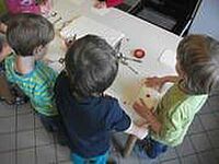 Während des ganzen Morgens durften die Minis, Midis und Maxis beim Backen der Lutherbrötchen helfen, die wir im Abschlusskreis genüsslich aßen.