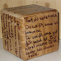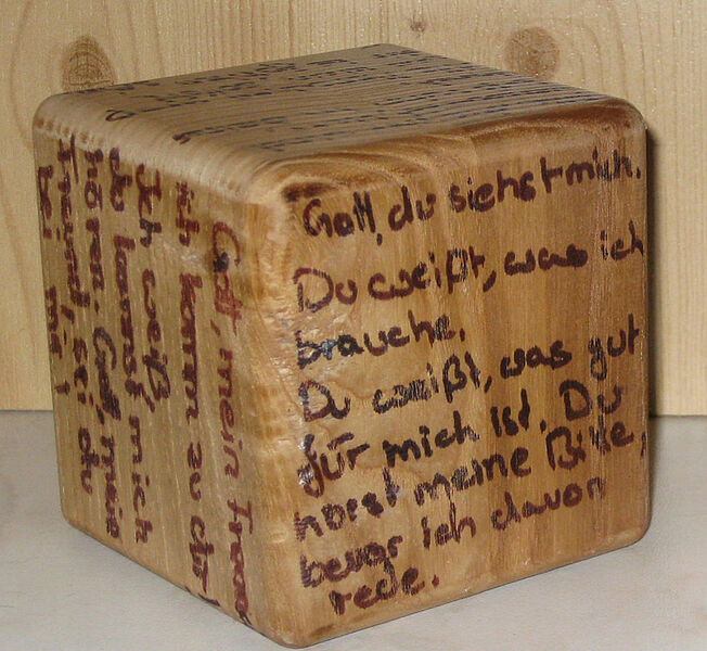 Wie wir Gott danken können. Mit einem Gebetswürfel kannst du vor dem Essen Gott Danke sagen. Aus einem Holzwürfel mit abgeschliffenen Kanten lässt sich ein schöner Gebetswürfel machen: einfach Gebete aufschreiben und anschließend lackieren. Aber auch aus Papier kannst du dir einen Würfel basteln. Achtung! Vorher mit den Gebeten beschreiben.