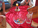 Jedes Kind malt sein eigenes Pfingstbild mit der Zauberkreide. Das Wunder von Pfingsten spiegelt sich in jedem Bild wieder!