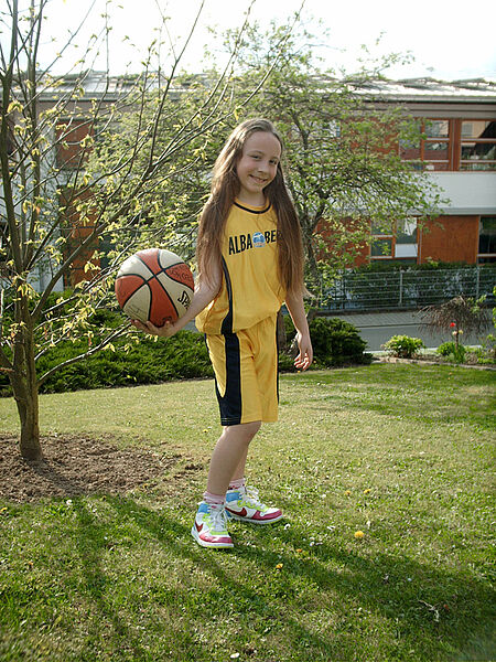 Lilli: Mein Lieblingssport ist Ballett – obwohl wir sehr viel Training machen und ganz oft Aufführungen haen. Mein „zweiter Lieblingssport“ ist Basketball. Ich spiele in unserem Verein in drei verschiedenen Mannschaften. Das Trikot ist echt – vom Bundesligaclub Alba Berlin – mein Onkel wohnt in Berlin und ich durfte mal zu einem echten Bundesligaspiel.