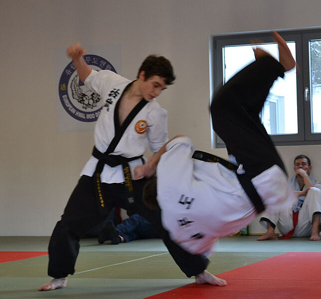 Max: Ich mache Hapkido aus Leidenschaft, es hilft mir beim Entspannen, bringt mich auf neue Gedanken, macht unheimlich viel Spaß, und ich bleibe körperlich sehr fit.