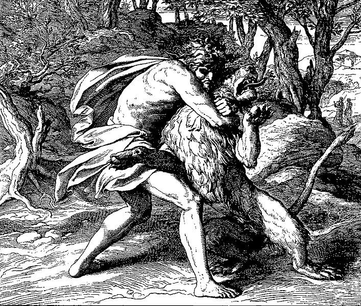 Nebenstehendes Bild "Samson kämpft mit dem Löwen" (oder direkt hier anklicken, herunterladen und kopieren) ausdrucken – entweder für jedes Kind als Handbild oder evtl. etwas vergrößern für eine Gruppe.