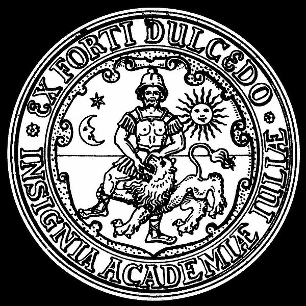 Der Kampf Samsons mit dem Löwen ist in der frühchristlichen und mittelalterlichen Kunst ein beliebtes Bild für Christus, der den Tod in der Gestalt des Löwen besiegt, und zugleich eine Allegorie des Starkmutes (Stärke). Die ehemalige Universität Helmstedt zeigt in ihrem Wappen diesen Kampf.“ (Quelle: de.wikipedia.org/wiki/Samson)