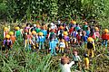 Wie sie so ihre Tasche auspacken, hören sie wie Jesus zu seinen Jüngern sagt: „Die Leute werden ganz unruhig. Bestimmt haben sie Hunger.“ „Aber Jesus – wir haben nicht soviel dabei. Sie sollen in die Dörfer gehen und sich etwas zu essen kaufen,“ antwortet ihm einer seiner Freunde. „Gebt ihr den Leuten etwas zu essen!“ sagt Jesus. „Es sind viel zu viel Menschen. Und soviel Geld haben wir nicht. Das reicht nicht für alle,“ sagt ein anderer leise.