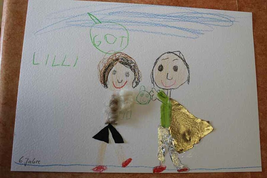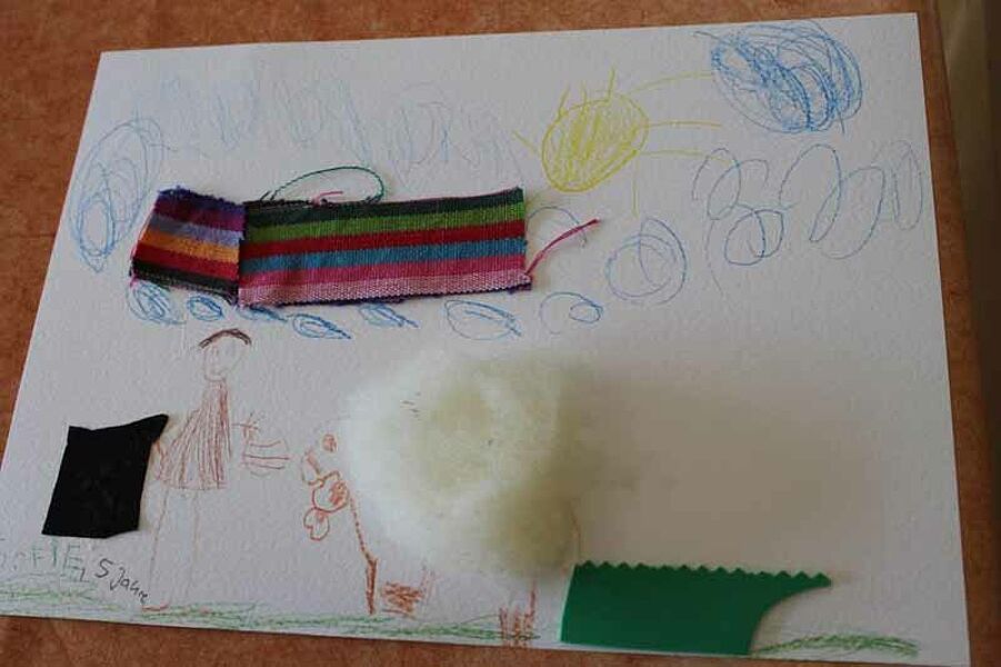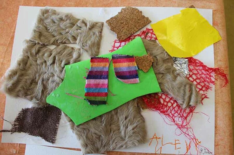 Du brauchst: bunten DIN-A4 Karton, Malstifte oder Farben und Pinsel, passendes „Fühlmaterial“ und Klebstoff.