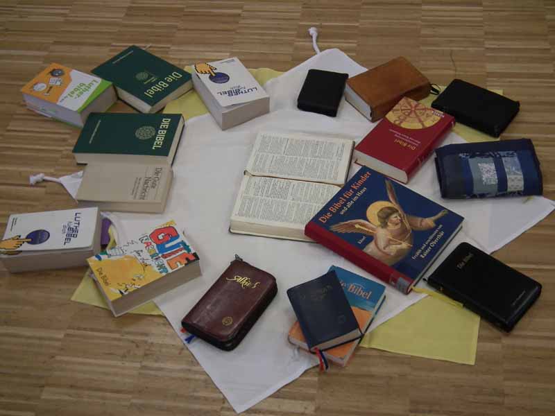 Sie arbeitet auch gerne mit dem "Klassiker" (Bibelbilderbuch, 5 Bände, Deutsche Bibelgesellschaft, Stuttgart), weil sie einen Grundtext bietet, der viel Raum zur eigenen Erzählung hat und gleichzeitig eindrucksvolle Bilder.