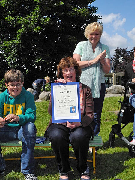 Wir bedankten uns bei Heike mit einem weinenden und einem lachendem Auge für 15 gemeinsame und vor allem schöne Jahre. Dabei wurde ihr eine Urkunde vom Kindergottesdienstpfarramt überreicht. Daz