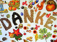 Thea singt ein Lied: Danke, Herr, dass du uns liebst, dass du uns zu Essen gibst, gib den Menschen in der Not auch ihr täglich Brot.