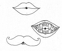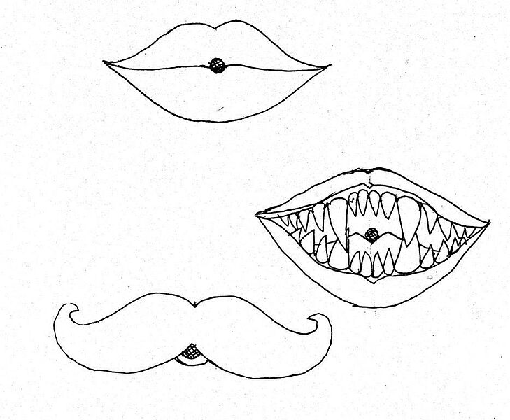 Nun schneide sie aus. In der Mitte jeden Mundes befindet sich ein kleiner schraffierter Kreis. Mach vorsichtig ein Loch hinein, so groß wie der Kreis ist.