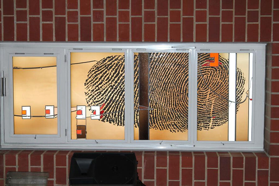 In der Friedenskirche in Wörth kann man in einem Fenster einen riesigen Daumenabdruck entdecken. Was meint ihr, was der Künstler damit sagen wollte?