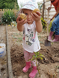 Wenn Kinder erleben, wie Kartoffeln aus der Erde geholt werden, ist das Lebensmittel für sie interessanter und spannender.