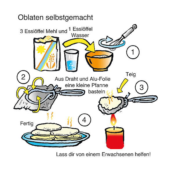 Leg den Teig auf die Pfanne und halte sie über eine brennende Kerze.