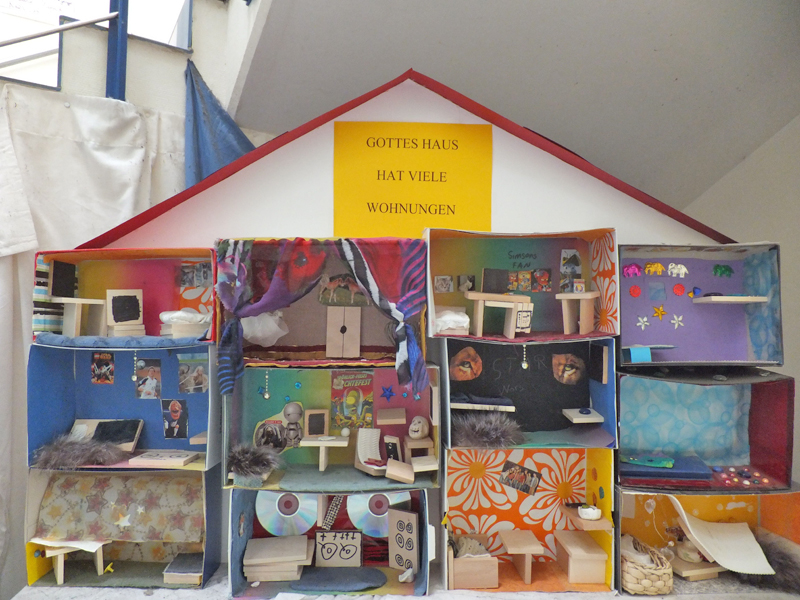 von Christine Hubka (Wien 2004, ISBN 3-7022-25129) in Schuhkartons ihr Zimmer bei Gott gebastelt und zu Gottes Haus mit den vielen Wohnungen zusammengestellt.