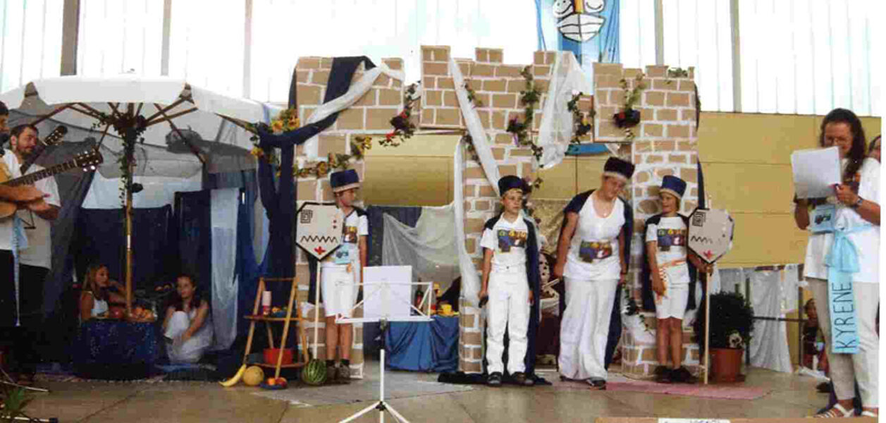 Mein Volk hat einen gerechten Gott. Er ist immer für uns da. Er hat es versprochen. Versprochen? Gott und mein Volk. Gott hat uns aus Ägypten befreit. Gott hat uns durch das Meer und durch die Wüste geholfen. Gott hat uns das versprochene Land gegeben. Gott liebt sein Volk. Es ist mein Volk. - Es ist mein Gott. Ich gehöre dazu. Gott hat es uns versprochen: er hilft. Ich muss etwas tun. Gott, hilf mir! Mach mich stark und schlau! Ich muss etwas tun.
