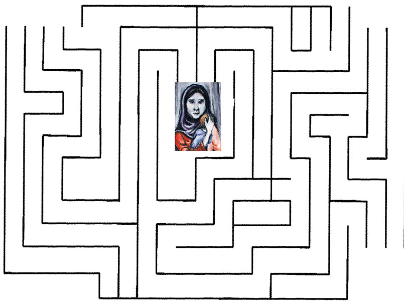 Es gibt verschiedene Wege um zu Maria mit dem Jesus-Baby zu kommen. Finde deinen Weg. Wenn du möchtest, kannst du noch die Hirten und die Weisen aus dem Morgenland an die verschiedenen Eingänge malen.