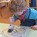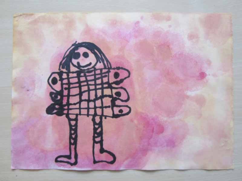 Die Kinder zeichnen mit Edding den Engel, welcher die Freude zu Maria gebracht hat….