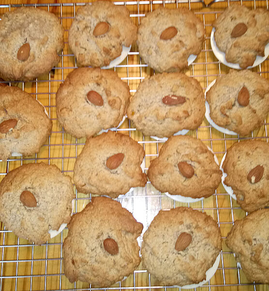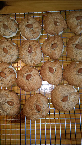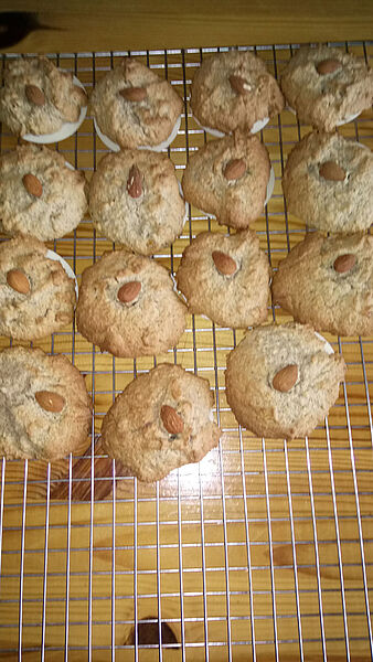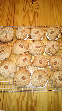 Alle Zutaten musst du verrühren und anschließend auf Oblaten portionieren. Dann bei 170 Grad ca. 15 - 20 Minuten im Backofen backen. Das ist sehr einfach und sehr gut!