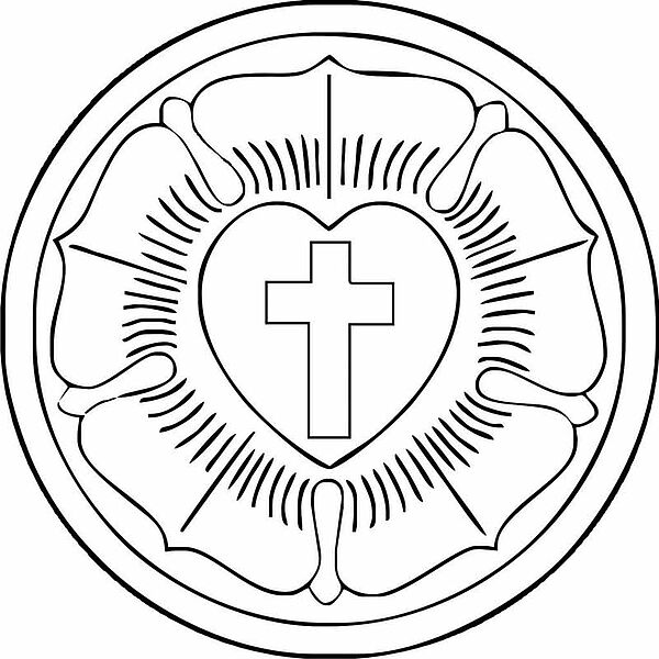 In der Mitte, im Zentrum steht das schwarze Kreuz. Dass Gott uns ins Herz schaut und wir von Herzen glauben, sagt das rote Herz. Die weiße Rose bedeutet Freude, Trost und Frieden. Der himmelblaue Hintergrund weist auf die Hoffnung: Wir leben mit Gott. Das alles ist umgeben von einem goldenen Ring, zeichen der Ewigkeit Gottes.